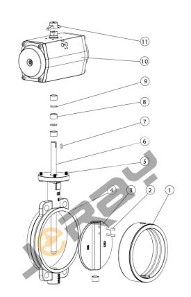 蝶板加工采用球形加工方法,蝶板形位误差很小,阀门的启闭扭矩低,扭矩值一致性好,可控制在标准扭矩±5范围内,非常适合大批量组装电气动装置, 橡胶阀座直接硫化在阀体上,阀门安装阀座不易被撮起,阀门安装后阀座内腔不易变形,不会造成启闭扭矩突变增大,阀座早期磨损而撕裂。而且还可以完全避免阀体与阀座间由于介质的侵入造成的阀座抱死蝶板的严重后果。 蝶板与阀轴连接选 用小模数花键结构,上阀轴搞弯强度比普通无销阀轴高,上阀轴密封采用橡胶密封圈加尼龙支撑套结构,下轴密封采用两道O型橡胶圈加固体密封脂加护盖的结构,从而降低下阀轴泄漏的机率,介质有会从阀轴处泄漏。