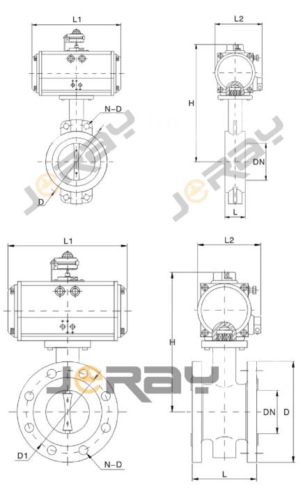 备注:根据不贩阀门扭矩,不同的气源压力及不同的实际工况,选择相匹配怕执行器其相关外形尺寸也随之变化