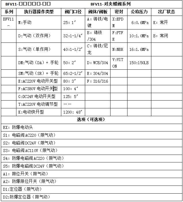 型号选型表