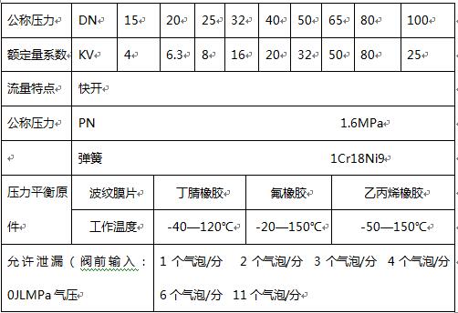 材质WCB ,CF8/CF8M, 压力平衡元件:膜片+弹簧, 材料:弹簧:304 |
