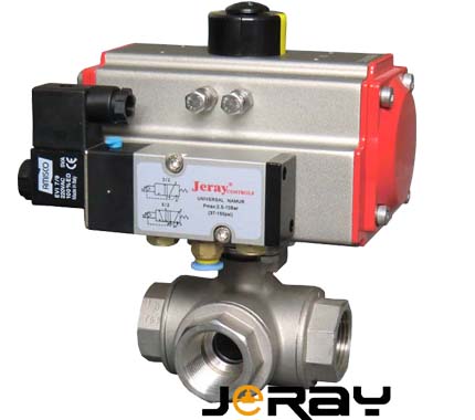 气动三通螺纹球阀有两座和四座密封结构,阀芯通道有L型和T型两种结构形式,采用控制阀芯旋转角度,改变阀芯通道与管道口的连接状态,可实现对三条支管不同的组合控制。 具体流向选择可查阅具体流向图。是航空航天,石油化工、灌装设备、涂料设备,干燥设备、真空设备、电镀设备、清洗设备、实验设备、消防设备、生物制药、农业机械、食品机械、纺织印染、船舶工业、自动控制、等行业的首选产品。