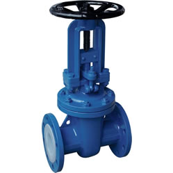 Z41F46?型 PN16、PN25 氟塑料衬里楔式闸阀:手动、法兰连接、明杆楔式刚性单闸板,阀座密封面材料为聚四氟乙烯,公称压力 PN16~PN25,阀体材料为灰铸铁衬氟塑料的闸阀。