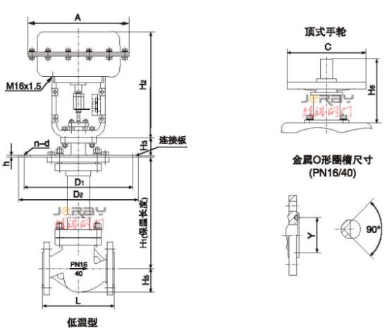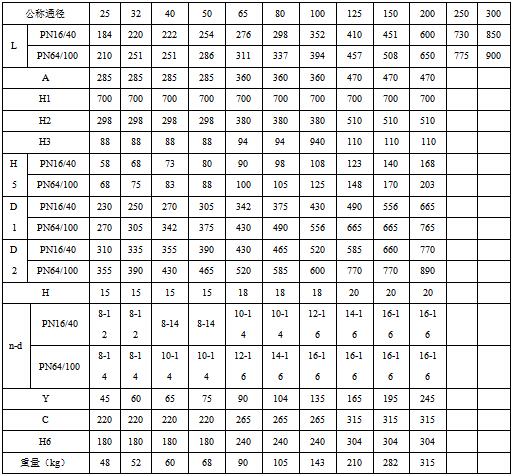 注:1、保温长度以700mm为例,表中重量为PN16数据,可以安装侧装式手轮